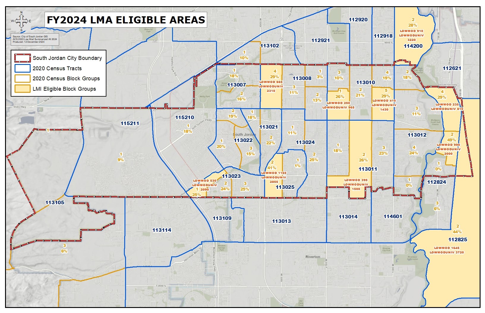 HUD publishes income limits to determine eligibility for different HUD programs. The income limits are based on the median family income for an area. The median income for the Salt Lake County area, including South Jordan, for FY 2025 is $122,700. Households making 80% or less of the median income, based on household size, qualify as low- and moderate-income. Income is projected based on current income going forward, not retrospectively. So if you've had a recent income loss, you may qualify regardless of past income.